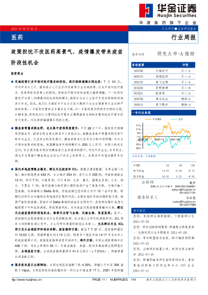 华金证券:医药行业周报:政策担忧不改医药高景气,疫情爆发带来疫苗阶段性机会.pdf