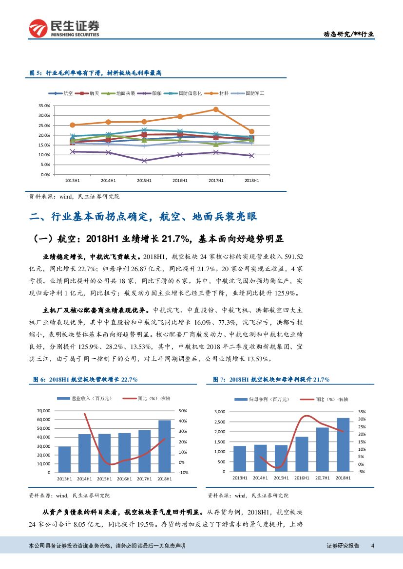 民生证券:国防军工行业2018年中报业绩综述:行业基本面持续改善,战略配置军工.pdf