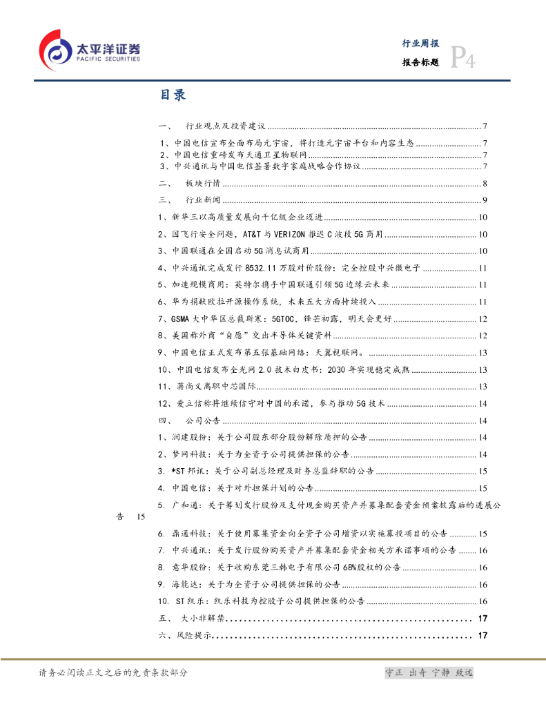 太平洋证券:通信行业周报:电信布局元宇宙,打造元宇宙平台和内容生态.pdf