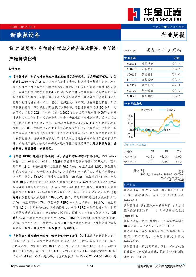 华金证券:新能源设备第27周周报:宁德时代拟加大欧洲基地投资,中低端产能持续出清.pdf