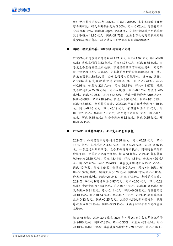 国海证券:史丹利(002588)-2023年年报及2024年一季报点评:2024Q1业绩同比增长,看好复合肥量利修复.pdf