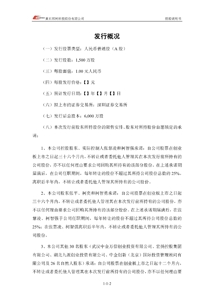 黄石邦柯科技股份有限公司深交所创业板IPO上市招股说明书.pdf