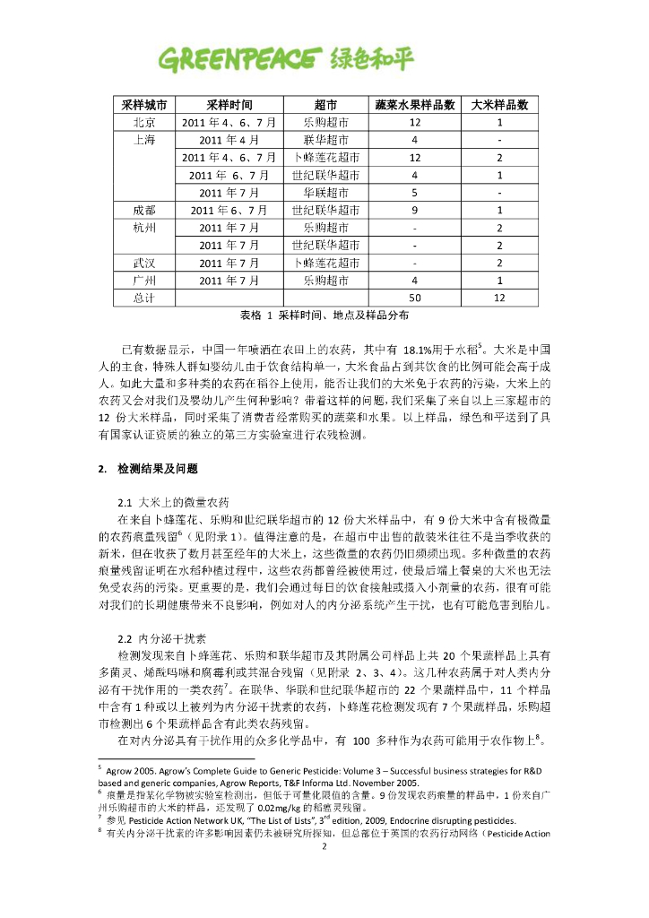绿色和平:2011 年卜蜂莲花、乐购及联华等超市果蔬、大米农残检测报告.pdf