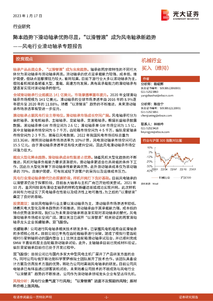 光大证券:风电行业滑动轴承专题报告:降本趋势下滑动轴承优势尽显,“以滑替滚”成为风电轴承新趋势.pdf