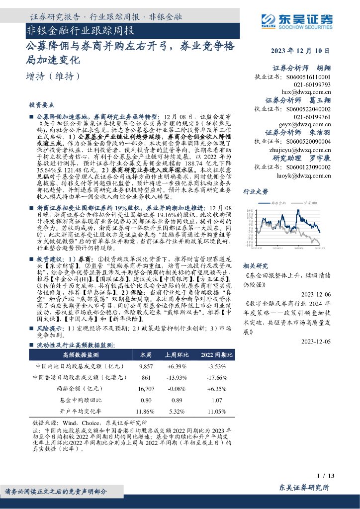 东吴证券:非银金融行业跟踪周报:公募降佣与券商并购左右开弓,券业竞争格局加速变化.pdf