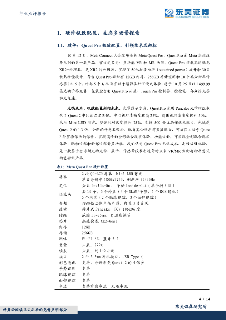东吴证券:电子行业点评报告:Quest pro探索技术方向,生态布局尽显前瞻性.pdf