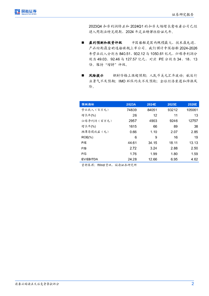 国海证券:中国船舶(600150)-公司扣非净利转正,周期业绩加速兑现2023年报与2024一季报点评.pdf