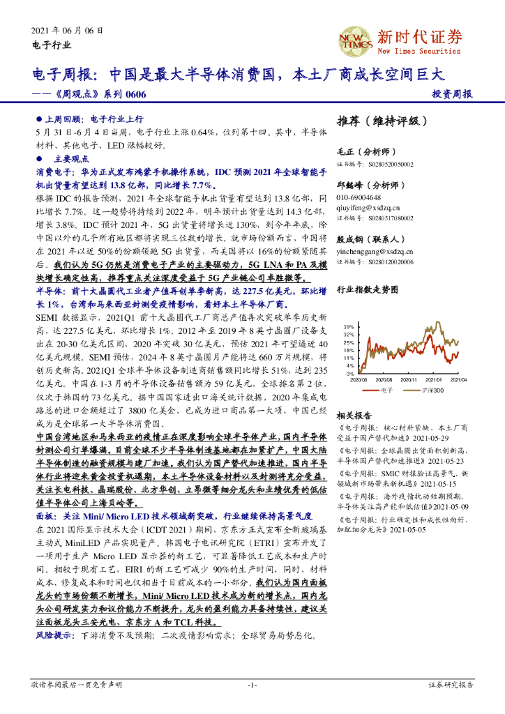 新时代证券:电子行业《周观点》系列:电子周报:中国是最大半导体消费国,本土厂商成长空间巨大.pdf