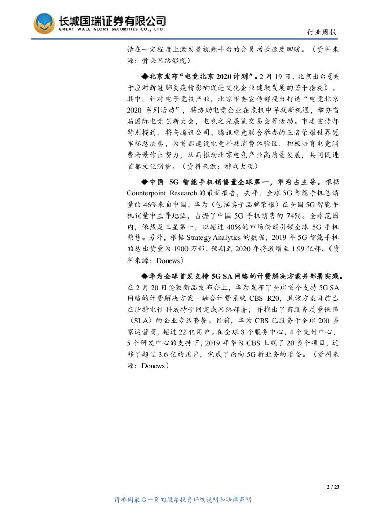 长城国瑞证券:TMT行业双周报2020年第4期(总第88期):中国5G智能手机销售量全球第一,在线视频平台流量激增.pdf
