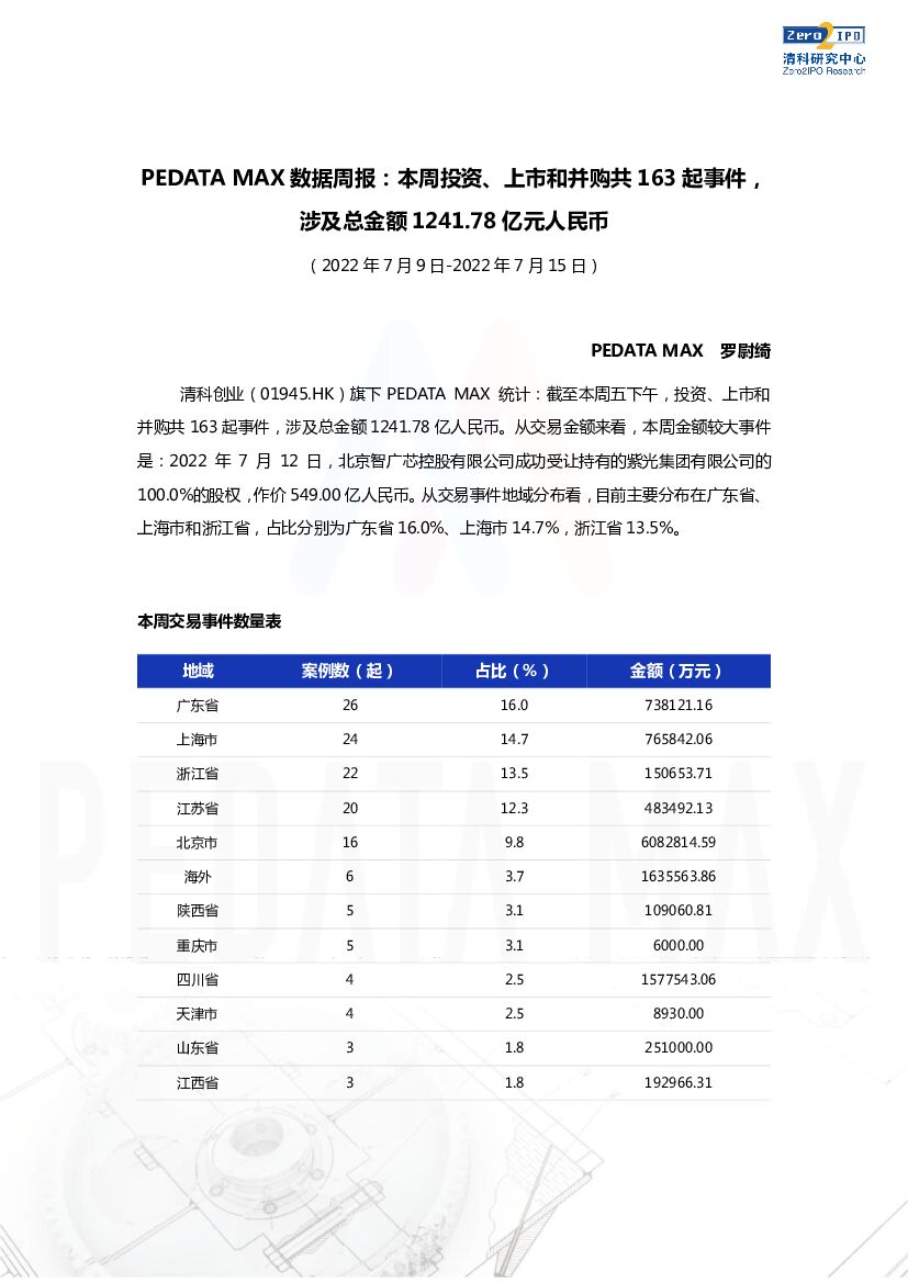 清科研究中心:PEDATA_MAX数据周报:本周投资、上市和并购共163起事件,涉及总金额1241.78亿元人民币.pdf