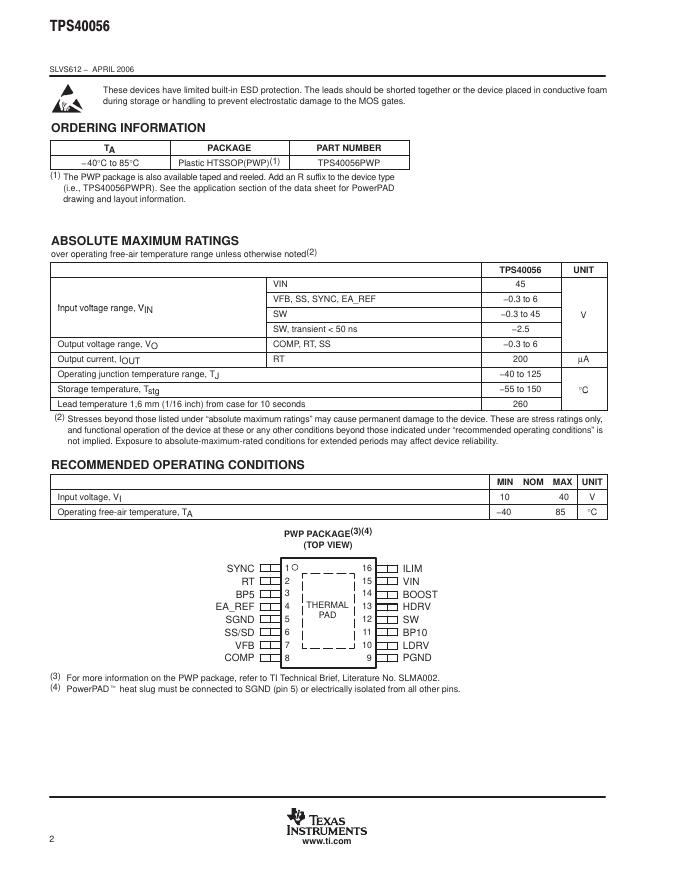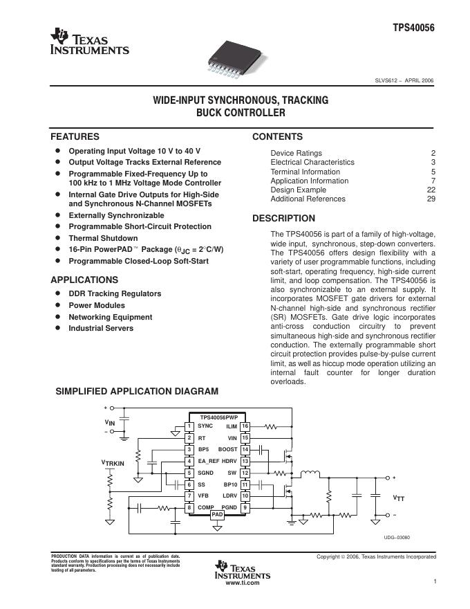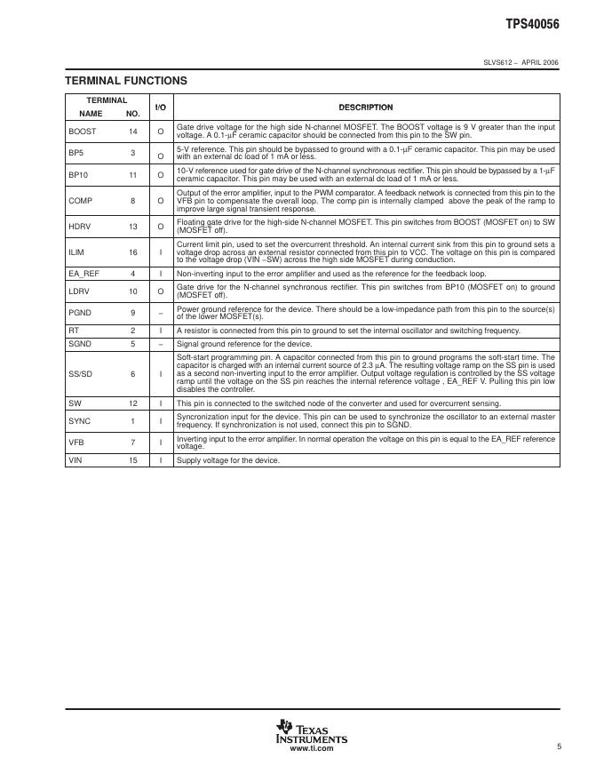 TEXAS INSTRUMENTS TPS40056 数据手册.pdf
