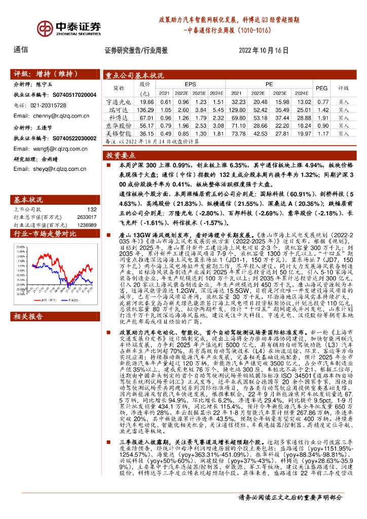 中泰证券:中泰通信行业周报:政策助力汽车智能网联化发展,科博达Q3经营超预期.pdf