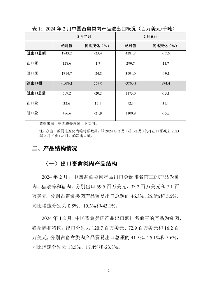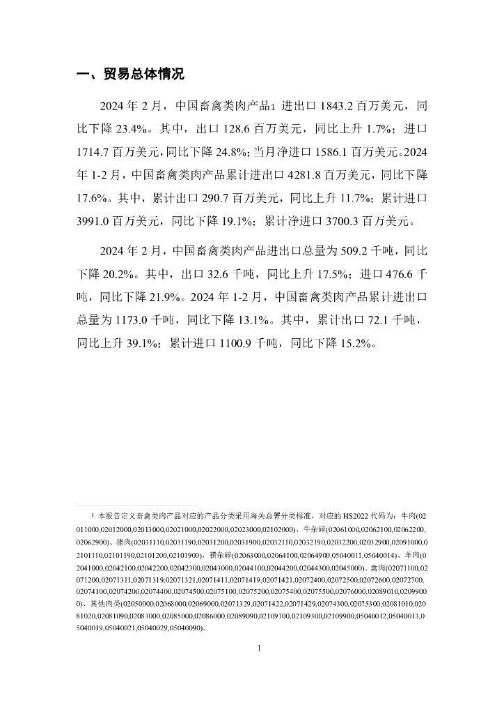 对外经济贸易大学:中国畜禽类肉产品贸易月度监测报告(2024年1-2月).pdf