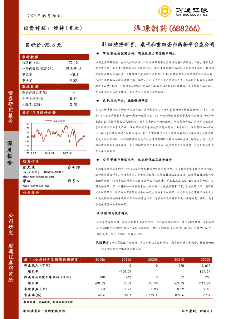 财通证券:泽璟制药(688266)-肝细胞癌新贵,氘代和重组蛋白药物平台型公司.pdf