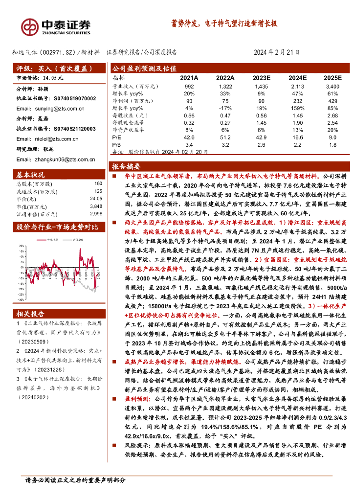 中泰证券:和远气体(002971)-蓄势待发,电子特气望打造新增长极.pdf