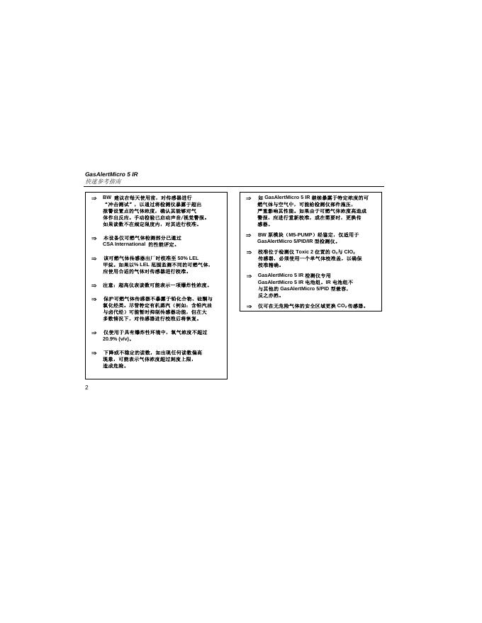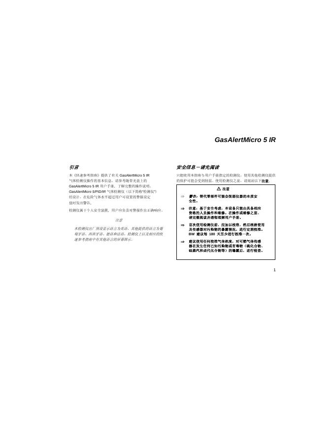 BW GasAlertMicro 5 IR O2 , CO, H2S, PH3 , SO2 , Cl 2 , NH3 , NO2 , HCN, ClO2 , O3 , VOC, 与 和可燃气体 1, 2, 3, 4, 与 5 复合气体探测仪 快速参考指南.pdf