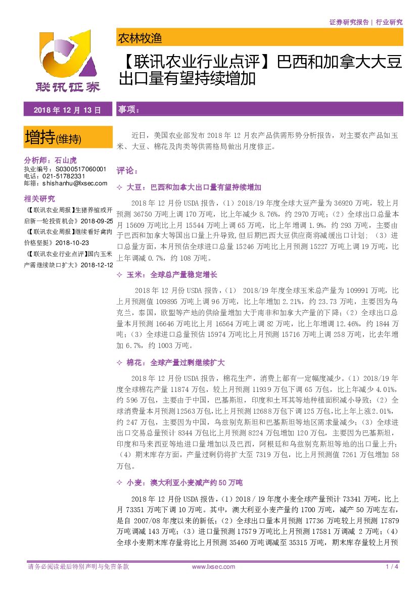 联讯证券:【联讯农业行业点评】巴西和加拿大大豆出口量有望持续增加.pdf