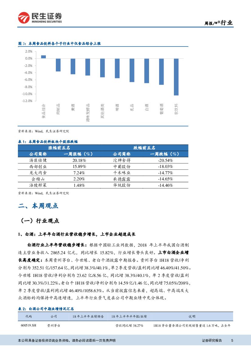 民生证券:食品饮料行业周报:白酒上市企业超速成长,大众品结构升级、渠道优化持续.pdf