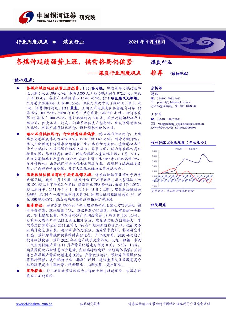 中国银河:煤炭行业周度观点:各煤种延续强势上涨,供需格局仍偏紧.pdf