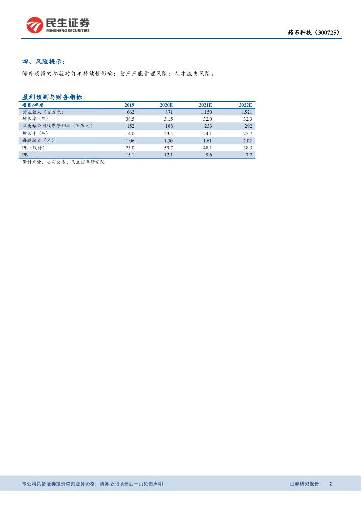 民生证券:药石科技(300725)-2020年一季报点评:符合预期,2020年仍是量产能力验证年.pdf