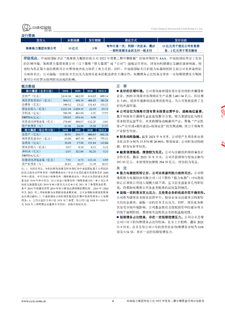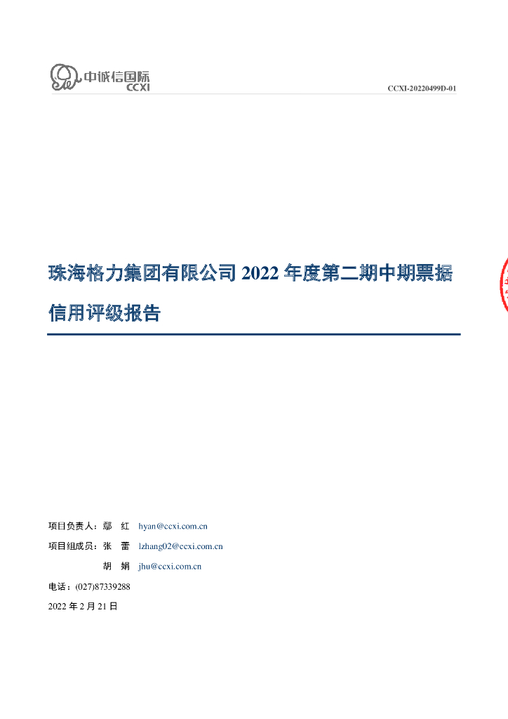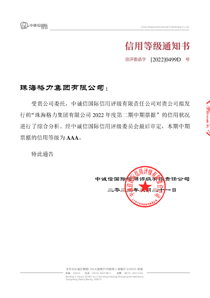 中诚信:珠海格力集团有限公司2022年度第二期中期票据信用评级报告.pdf