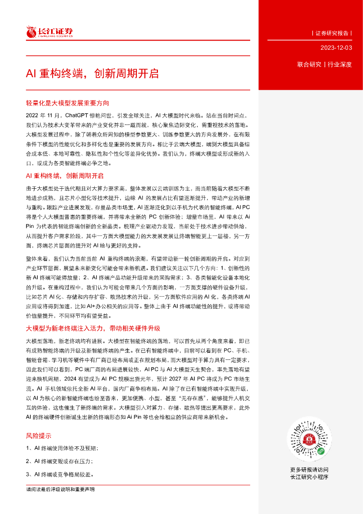 长江证券:2023人工智能行业报告:AI重构终端,创新周期开启.pdf