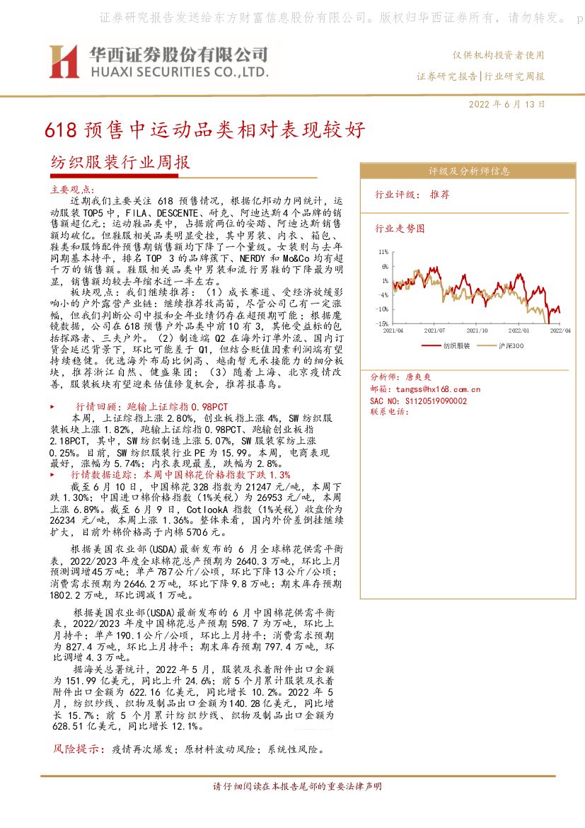 华西证券:纺织服装行业周报:618预售中运动品类相对表现较好.pdf
