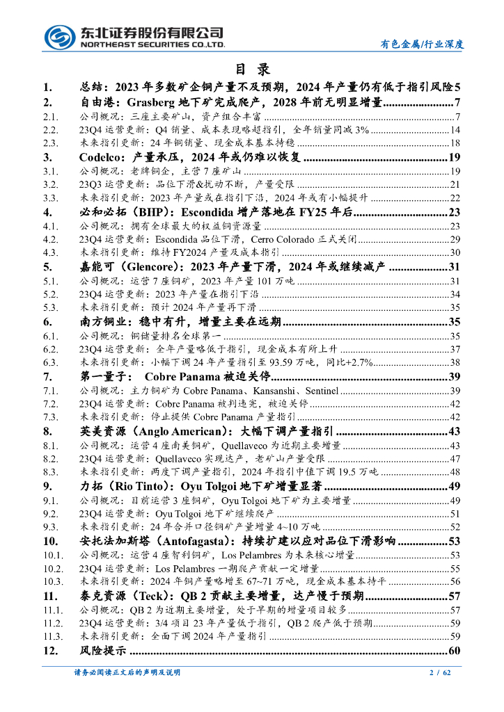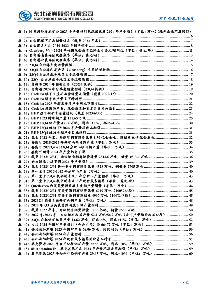 东北证券:有色金属行业海外大型铜企23Q4季度经营跟踪深度报告:铜矿23年增量兑现度低,24年增量难言乐观.pdf