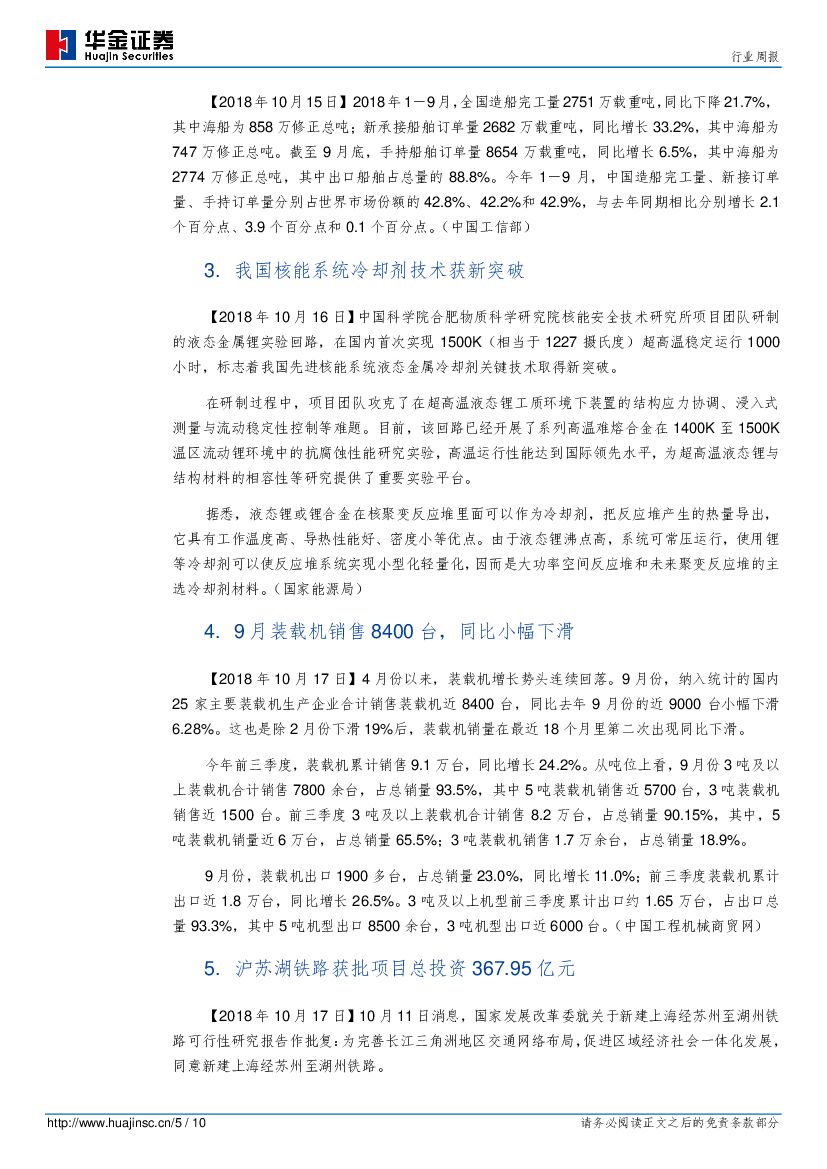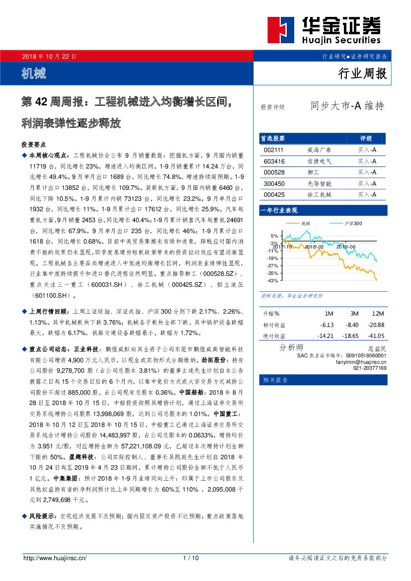 华金证券:机械:第42周周报:工程机械进入均衡增长区间,利润表弹性逐步释放.pdf
