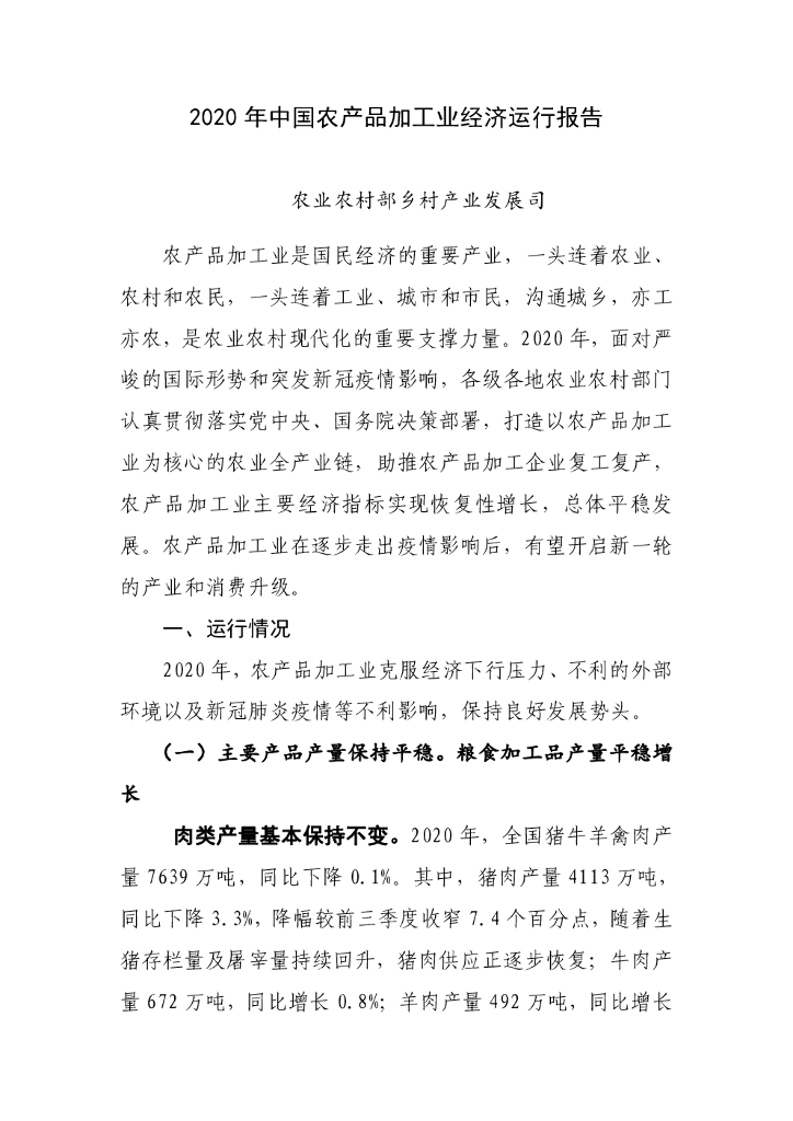 农业农村部:2020年中国农产品加工业经济运行报告.pdf