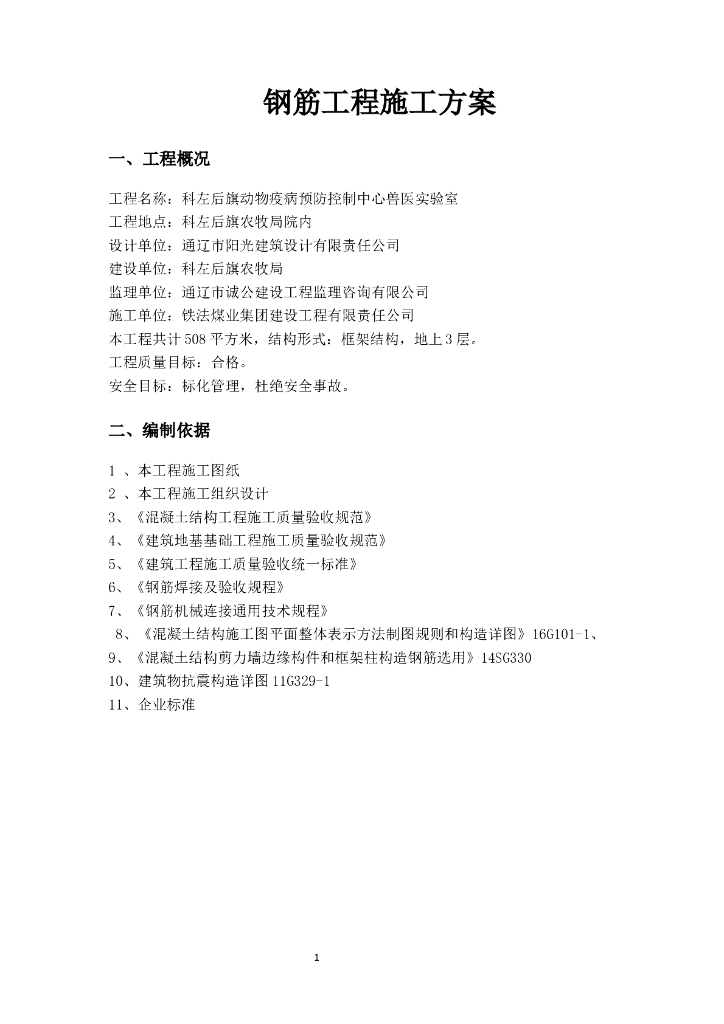 兽医实验室钢筋绑扎、安装 施工方案.doc