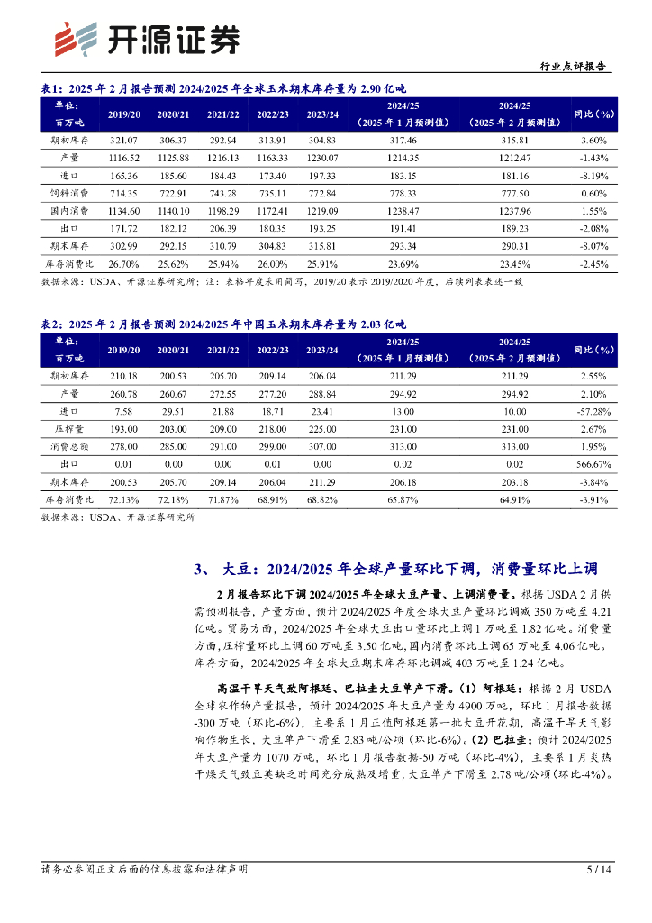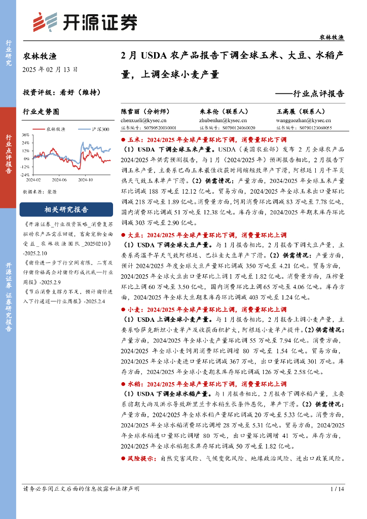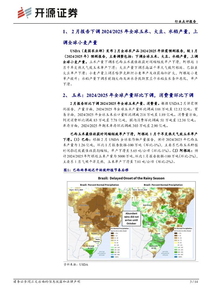 开源证券:农林牧渔行业点评报告:2月USDA农产品报告下调全球玉米、大豆、水稻产量,上调全球小麦产量.pdf