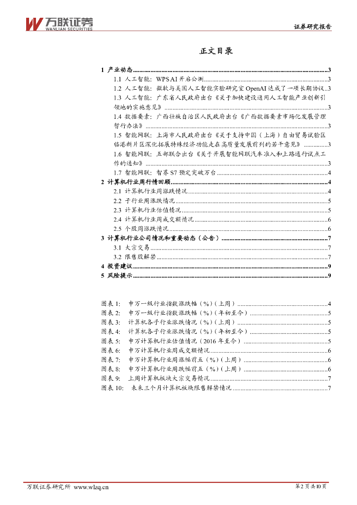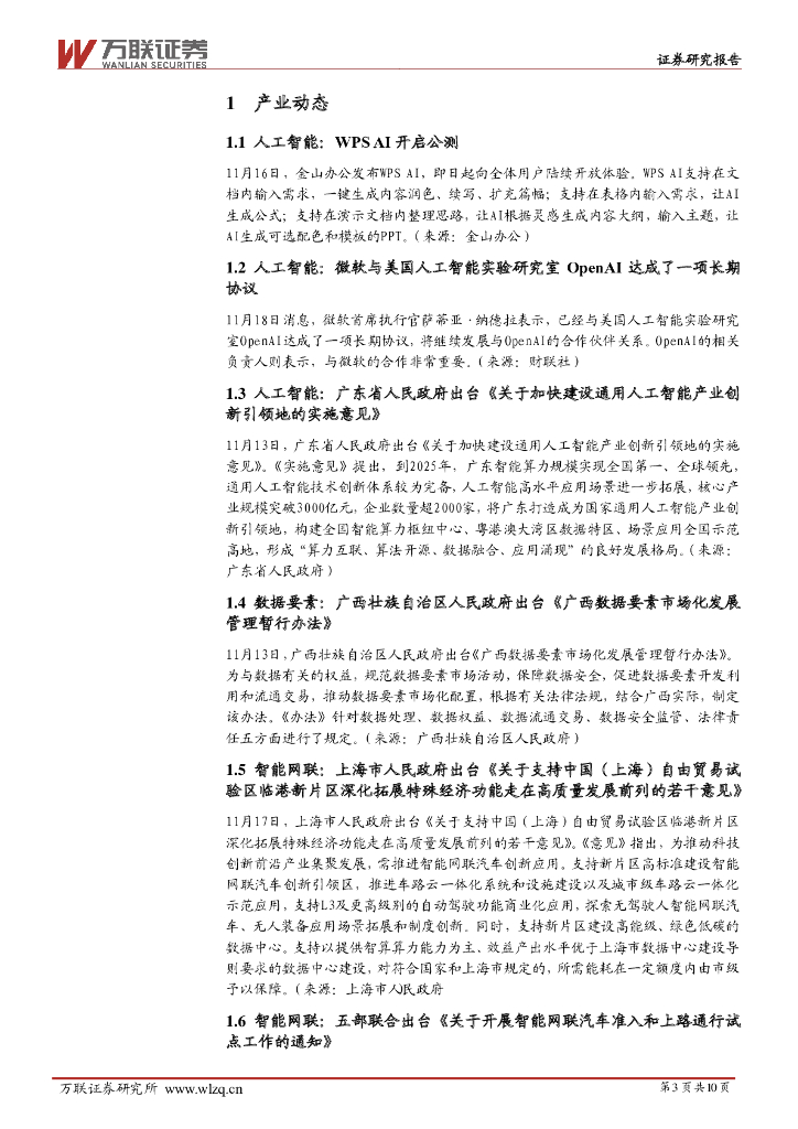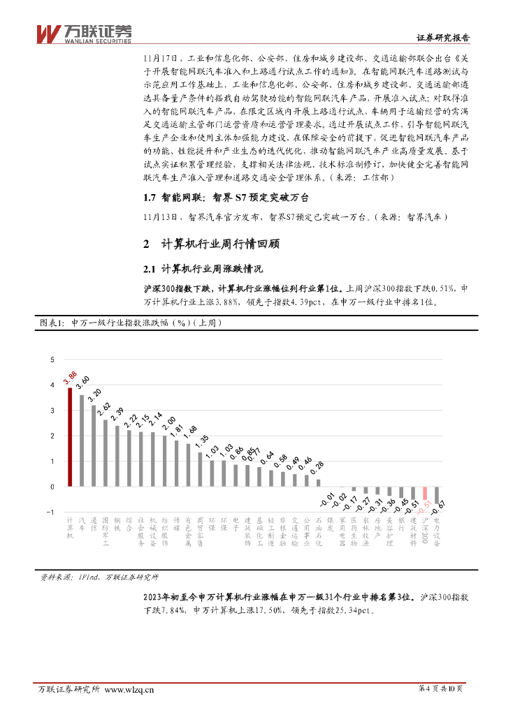 万联证券:计算机行业周观点:四部门联合发布智能网联汽车试点工作通知.pdf