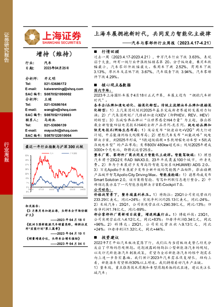 上海证券:汽车与零部件行业周报:上海车展拥抱新时代,共同发力智能化主旋律.pdf
