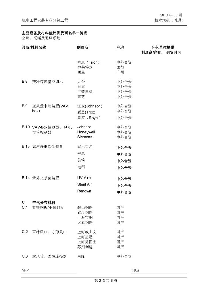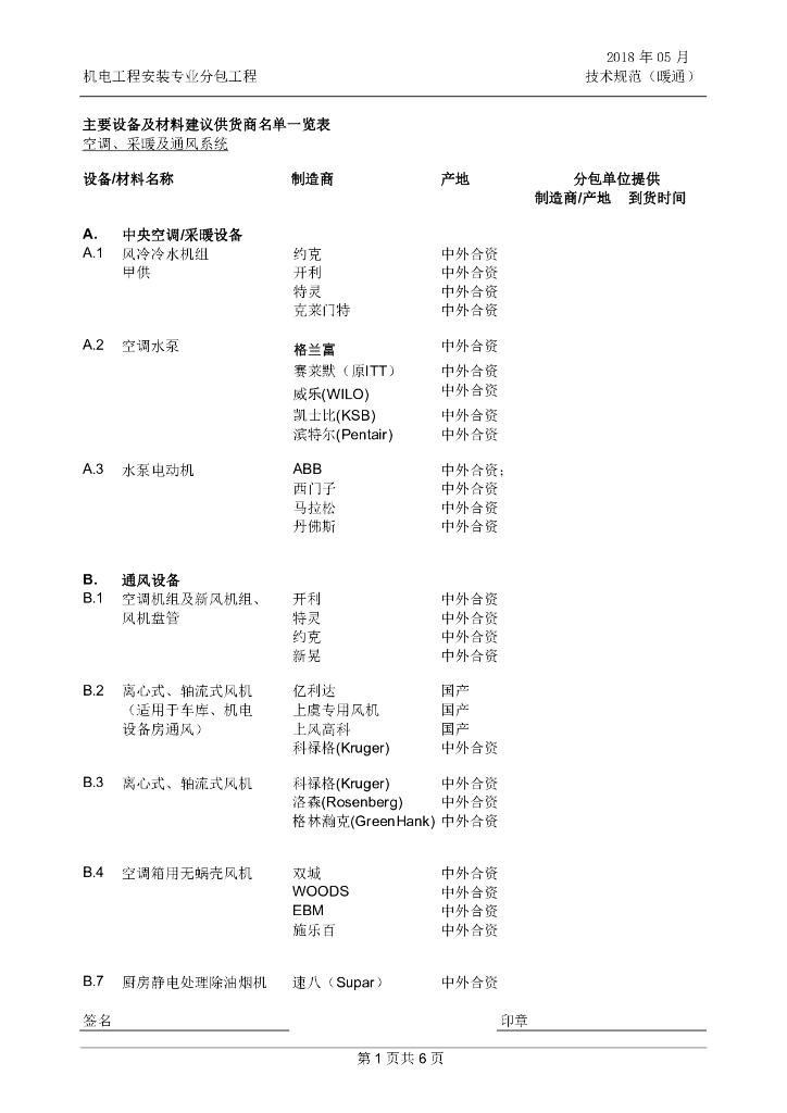 主要暖通设备及材料建议供货商名单一览表.pdf