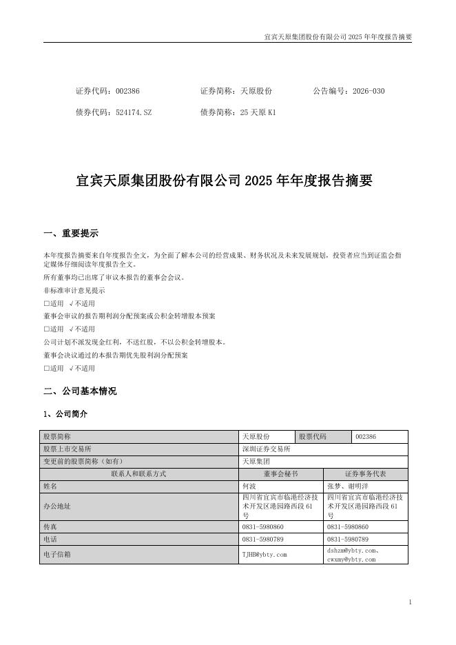 002386-天原股份:2025年年度报告摘要.pdf
