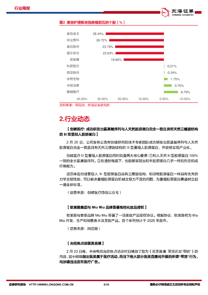 东海证券:美容护理行业周报:创健医疗发布重磅重组胶原蛋白,医美合规化趋严.pdf