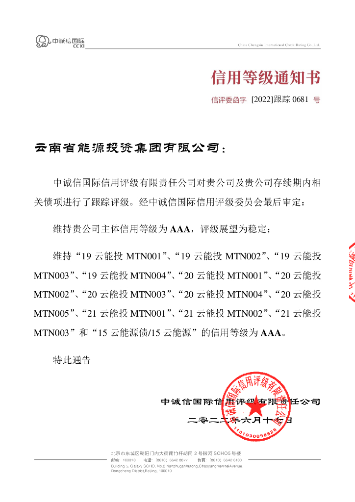 中诚信:云南省能源投资集团有限公司2022年度跟踪评级报告.pdf