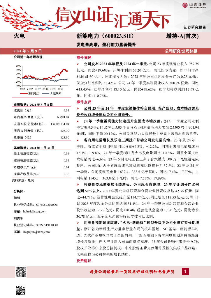 山西证券:浙能电力(600023)-发电量高增,盈利能力显著提升.pdf