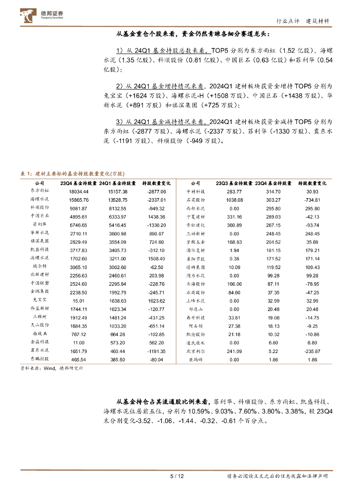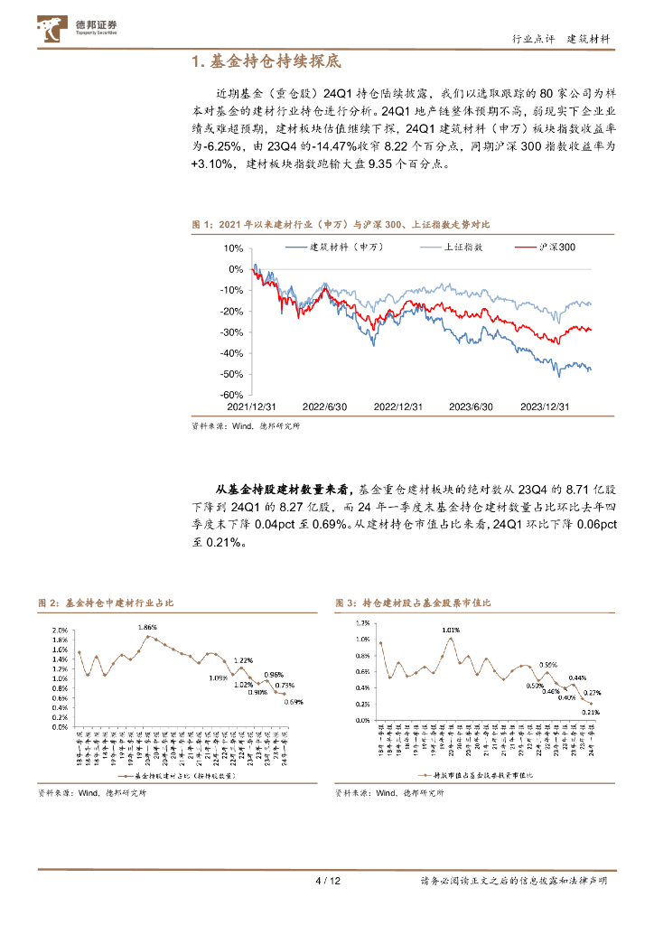 德邦证券:建材行业基金持仓点评:24Q1地产链预期偏弱,建材板块基金持仓持续探底.pdf