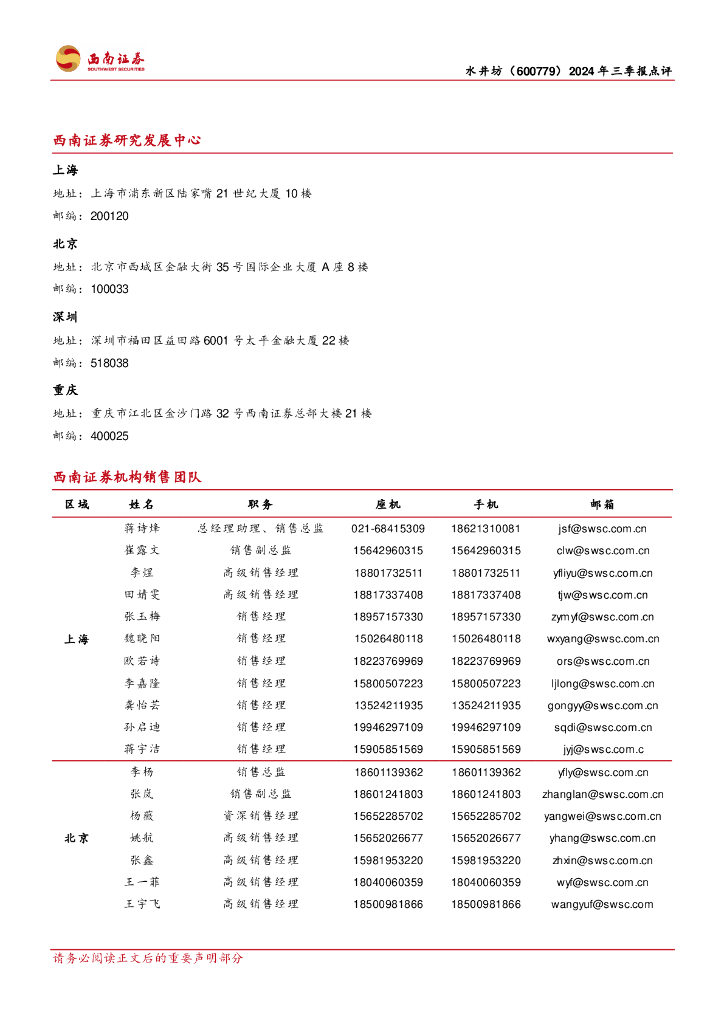 西南证券:水井坊(600779)-2024年三季报点评:臻酿八号动销稳健,中档酒贡献增量.pdf