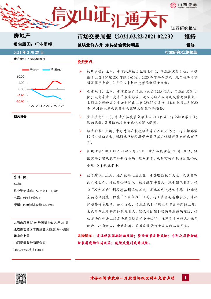 山西证券:房地产市场交易周报:板块量价齐升 龙头估值优势明显.pdf