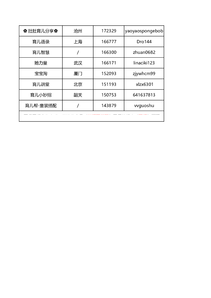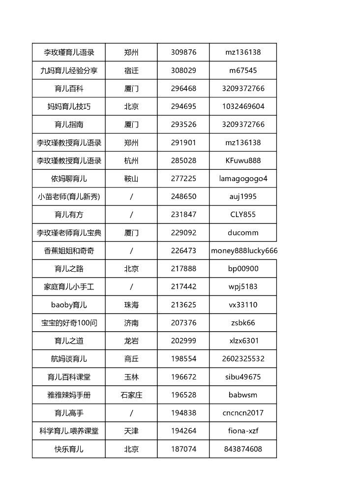 育儿类抖音网红联系方式.pdf