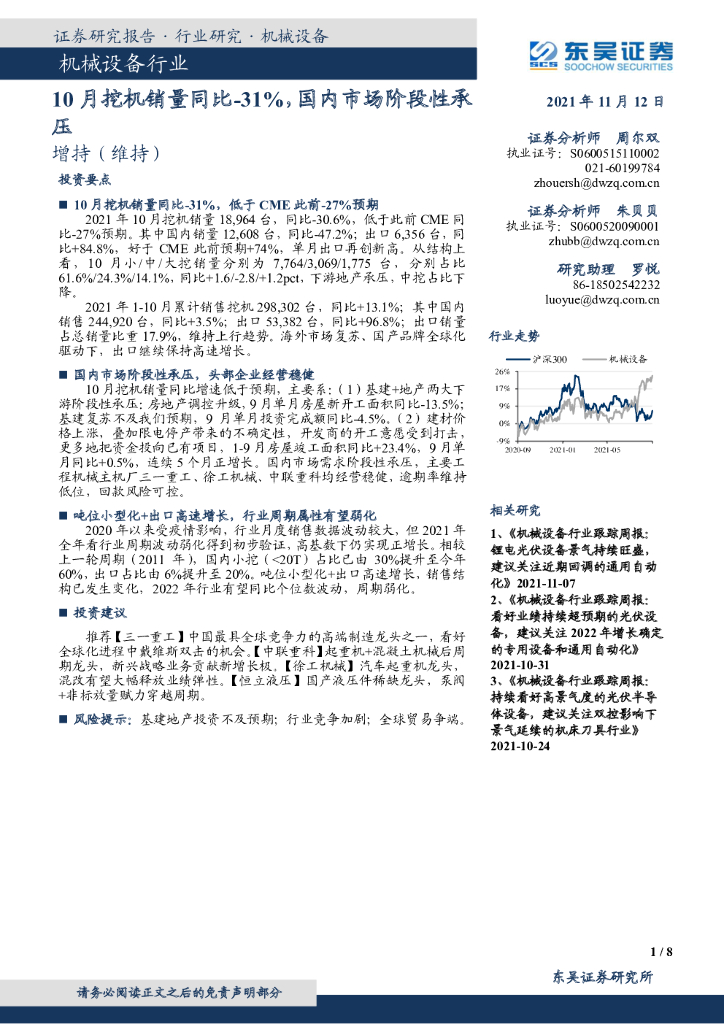 东吴证券:机械设备行业:10月挖机销量同比-31%,国内市场阶段性承压.pdf