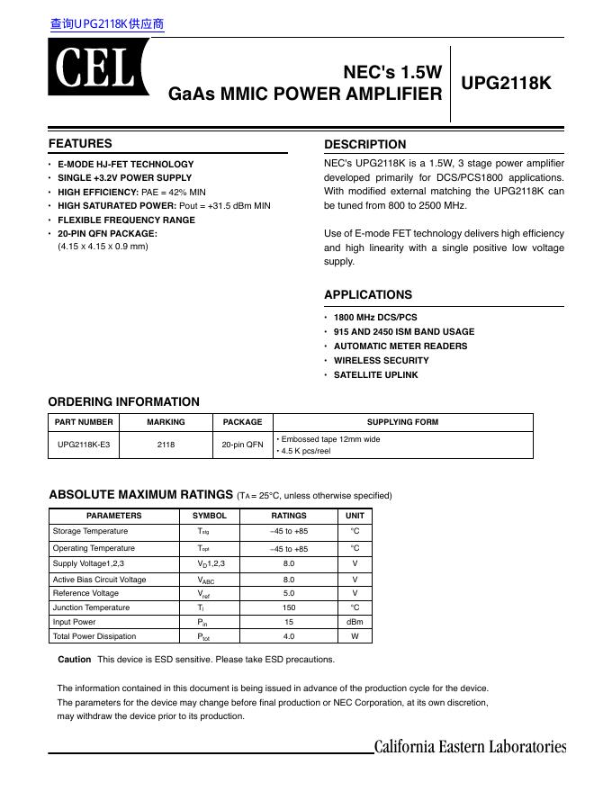 NATIONAL SEMICONDUCTOR - May 27, 2008 DS15BA101 1.5 Gbps Differential Buffer with Adjustable Output Voltage General 说明书