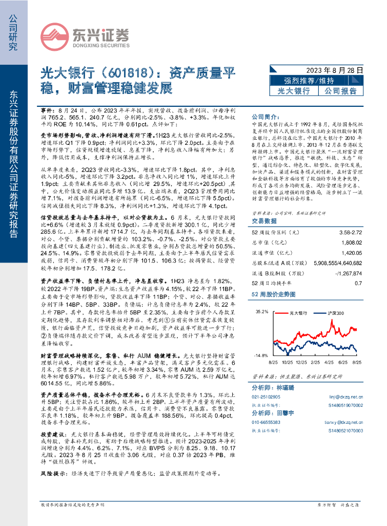东兴证券:光大银行(601818)-资产质量平稳,财富管理稳健发展.pdf