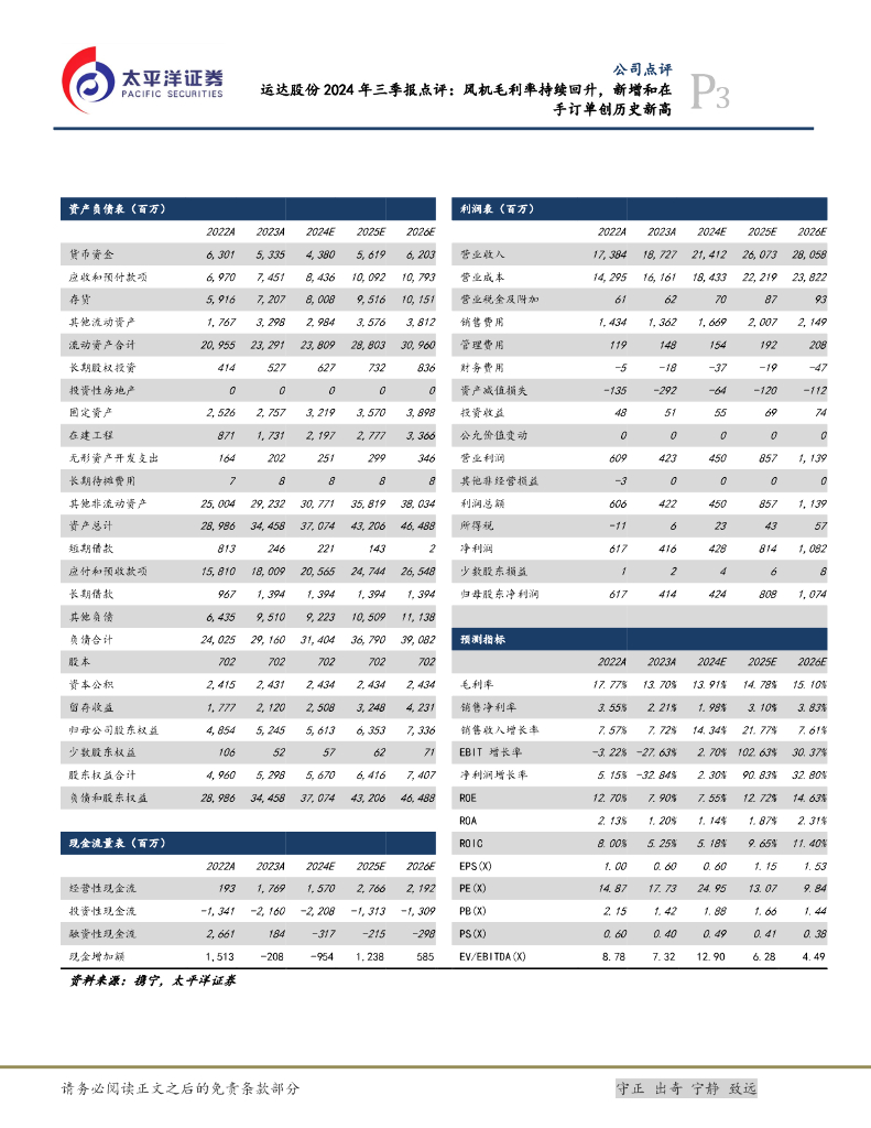太平洋证券:运达股份2024年三季报点评:风机毛利率持续回升,新增和在手订单创历史新高.pdf