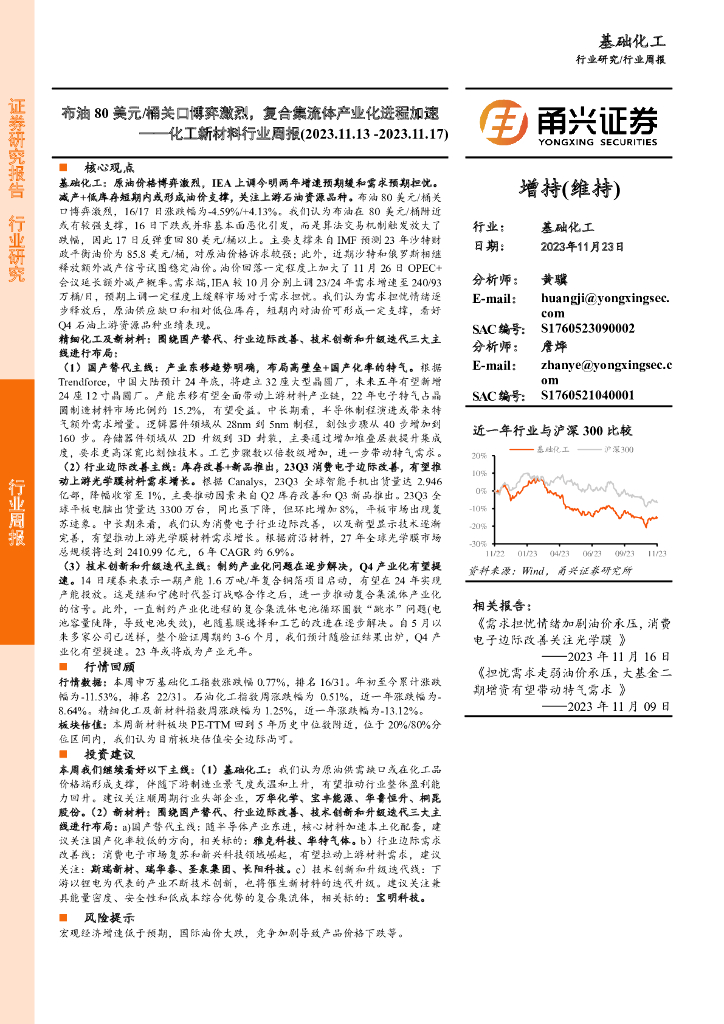 甬兴证券:化工新材料行业周报:布油80美元/桶关口博弈激烈,复合集流体产业化进程加速.pdf