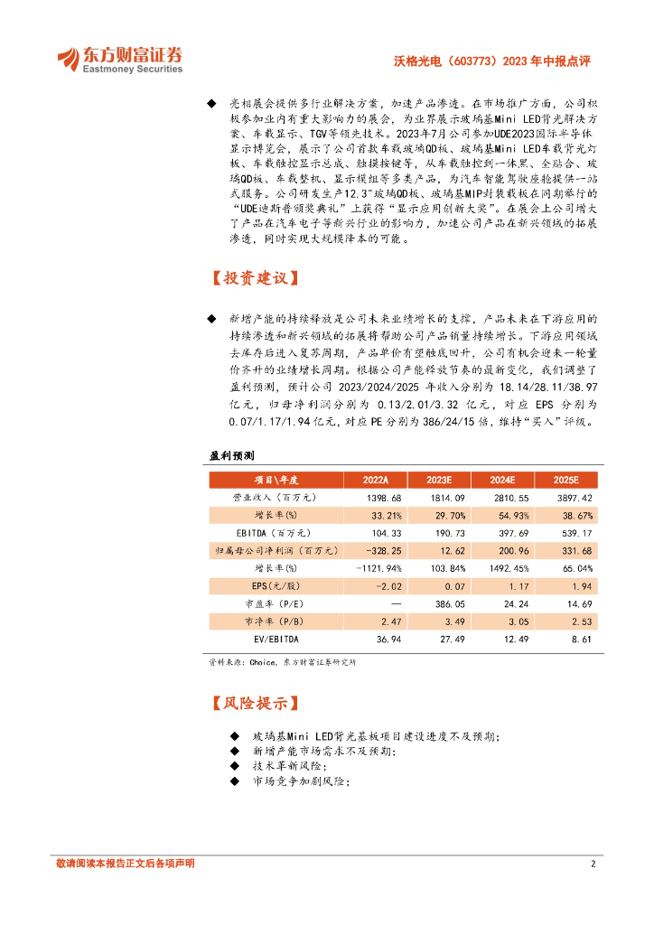 东方财富证券:沃格光电(603773)-2023年中报点评:Q2业绩承压,即将迎来产能释放构筑长期成长曲线.pdf