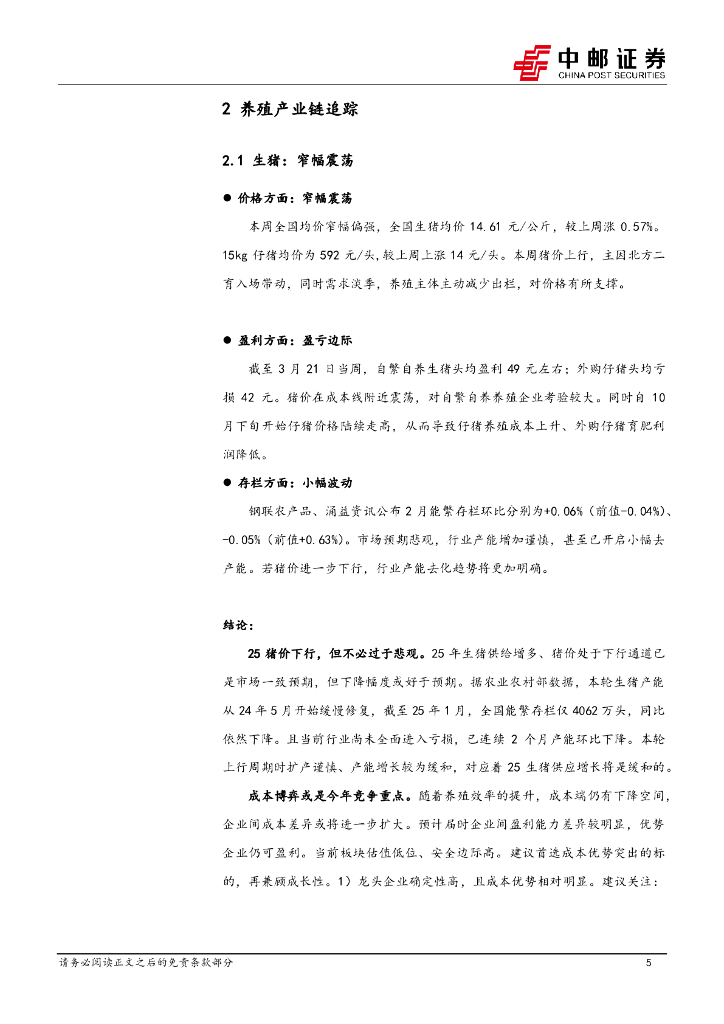 中邮证券:农林牧渔行业报告:猪价窄幅震荡,苗价继续反弹.pdf